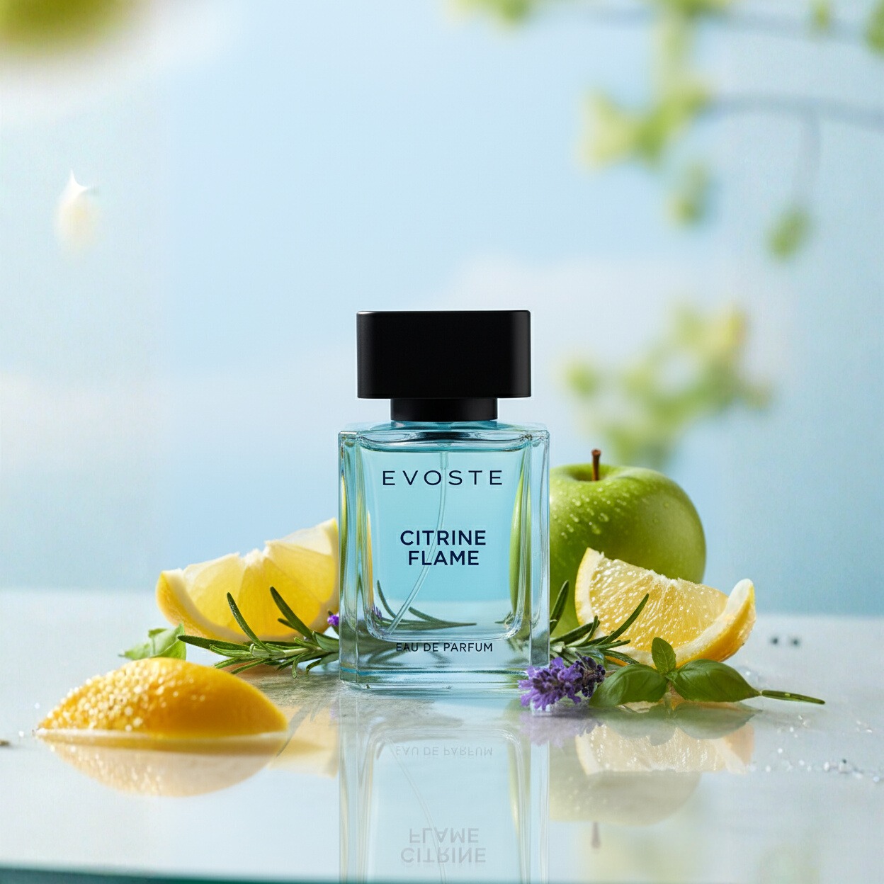 Exuding a fresh, fruity, and woody character, this fragrance blends bergamot, apple, plum, and cedarwood with a touch of geranium. It evokes memories of quiet afternoons in an apple orchard.